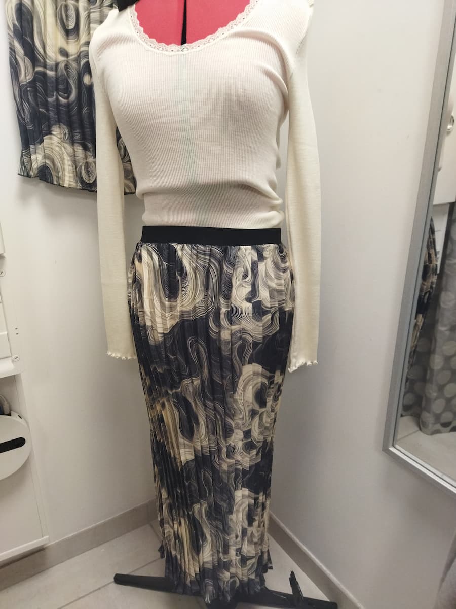 3. Les jupes en polyester plissé : courte et longue