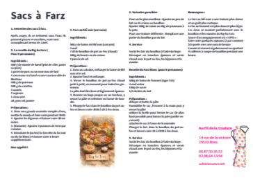 Retrouvez l'article de presse sur la passation de l'entreprise farz poch Recette du Kig ha Farz Sacs à Farz 1. Entretien des sacs à farz Après usage, ils se nettoient sous l’eau. Ils peuvent passer en machine, mais sans assouplissant … Lire la suite